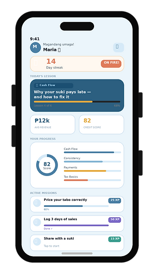 Sampaguita turns real business moments into learning opportunities — and your progress into proof of creditworthiness.